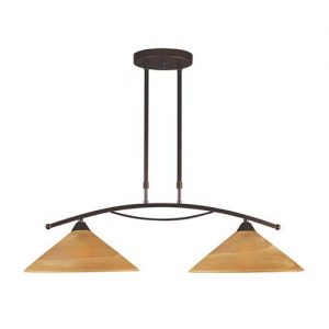The geometric lines of this collection offer harmonious symmetry with a sophisticated contemporary appeal. A perfect complement for kitchens, billiard parlors, or any area that requires direct lighting. Featured in satin nickel with white marbleized glass or aged bronze finish with tea stained brown swirl glass.