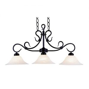 - 40″ Buckingham 3 Light LED Billiard In Matte Black And White Faux Marble Glass