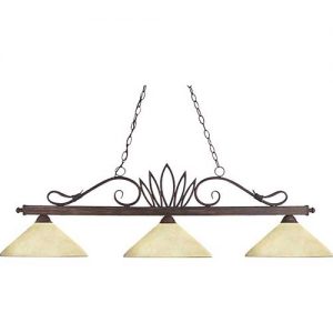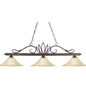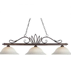 The crown crafted bar gives a unique look to the light. The crown bar matches perfectly with the weathered glass shades, brings a classy look to any billiards room. Love the crown style this light has? Bring it into your room today!