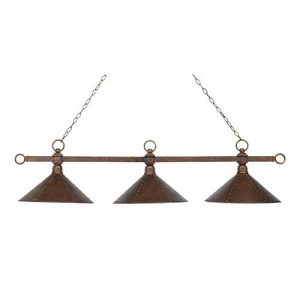 - 57.5″ Designer Classics 3-Light Billiard In Antique Copper With Hand Hammered Iron Shades
