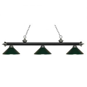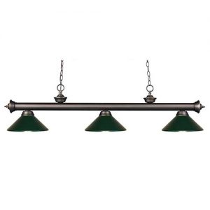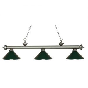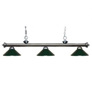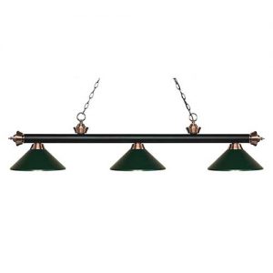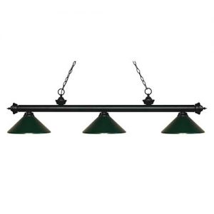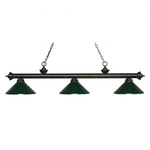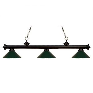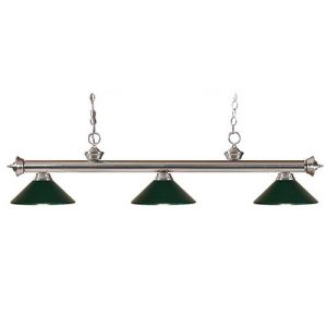 A classic dark green matched with the green felt gives any billiards room that look and feel it deserves. Along with it’s classic dark green colored shades comes along multiple options for shade finishes, which even further give you the ability to match your room. At 57″ in length and an adjustable chain, you will be able to easily illuminate your table and room no matter how your setup is laid out. Love how this light would match in your room? Why not add it today!