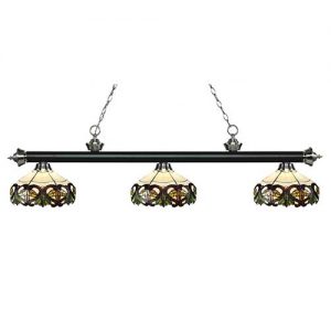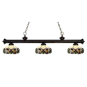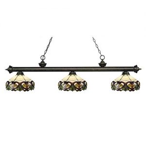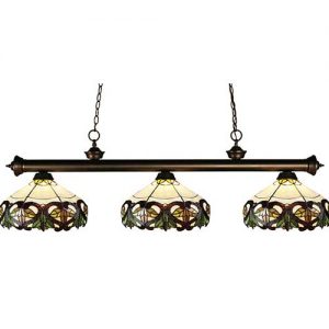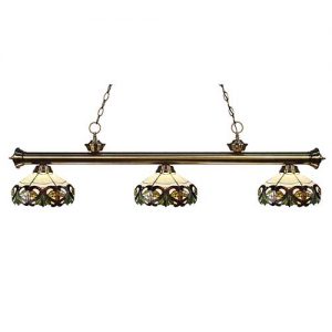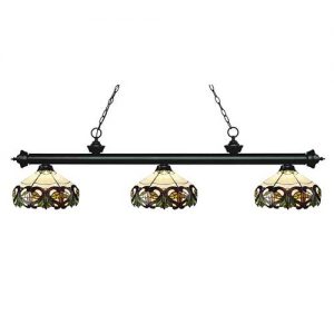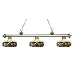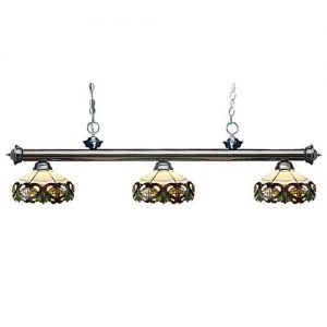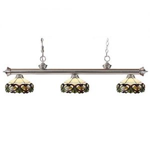 This Tiffany light is matched up with some beautifully designed stained glass shades. With multiple bar finish options to choose from, you can be assured that you can pick the best matching billiard fixture for your room. Love the way this Tiffany light look? Add it to your room today!
